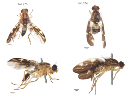 ミバエ標本を整理していて、当時タテジマハマダラミバエとしていた標本を改めてチェックしていましたが、諸々よくわからなくなってしまいました。