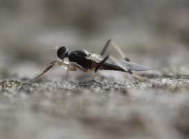 ご迷惑にならないように意識してますが、またまたわからないので教えてください。 4月4日八王子市内でイヌシデの大木を登り降りする探索行動をとる個体です。目測全長7ミリほど。動きが速いので撮りやすいよう手のひらで遠目に邪魔しても飛び立つことはありませんでした。 てっきり小蜂の仲間と見ましたが写真を見ると触角がアブ的で細い毛が1本出てます。後頭部と胸の後方にも少しばかり毛が生えていて(写真が不明瞭ですみません)前脚を立てて登りも下りも常に頭部がやや高めの姿勢をとります。ご意見を賜りますようお願いいたします。