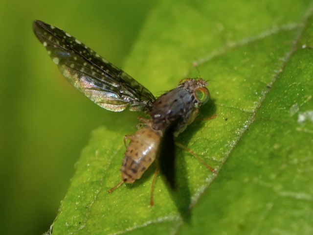 なぜか何度やってもエラーになるので、とりあえず投稿画面を確保するために送信します。八王子市内で今月初旬に撮りました。体長はおよそ4ミリ。上から見た体はスリムです。横から見るとベレー帽をかぶったような胸に見えます。過去ログのアタマから丹念にチェックして、2014年1月26日の投稿番号8731と2015年6月4日の9359が大変参考になりました。