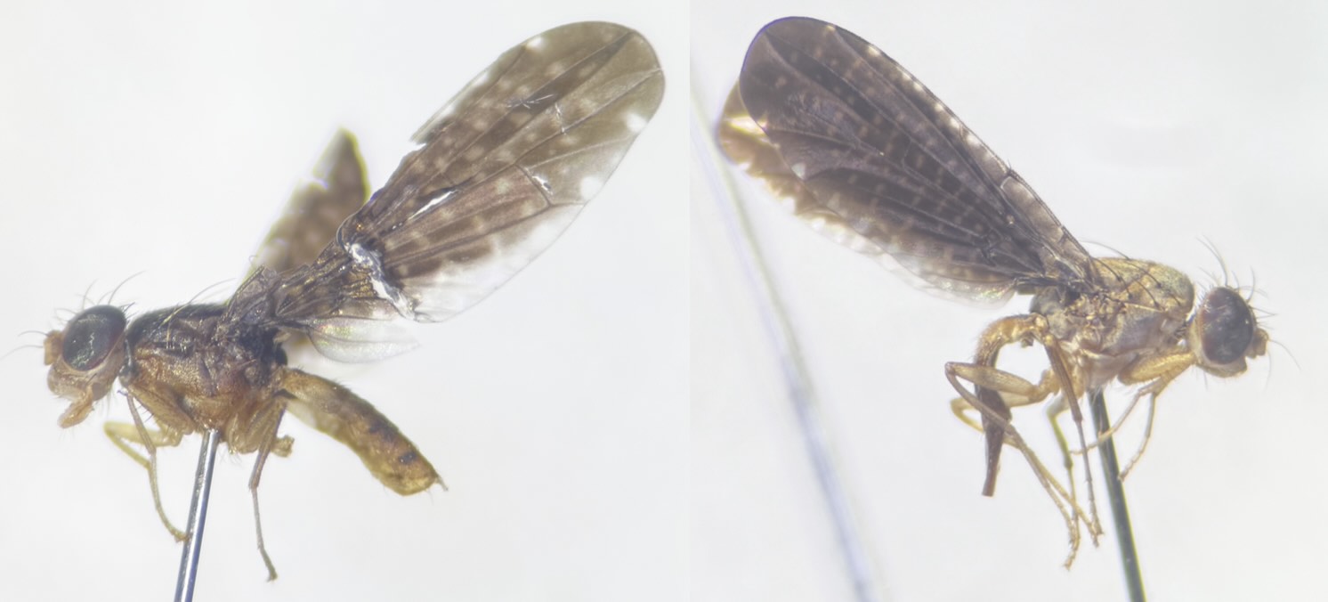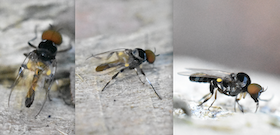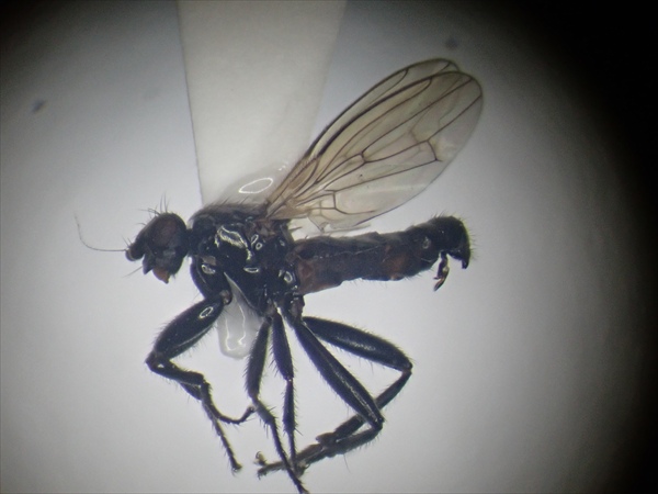 秋田県東成瀬村椿川2025.12.17採集 雪上で採集しました。 "ペストコントロール図説の絵解き検索"で検索しました。 後脚の第1跗節が太い短いことからハヤトビバエ科では?と思ってます。 よろしくお願いします。