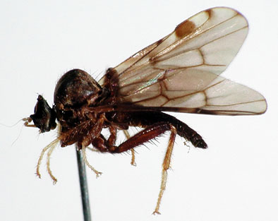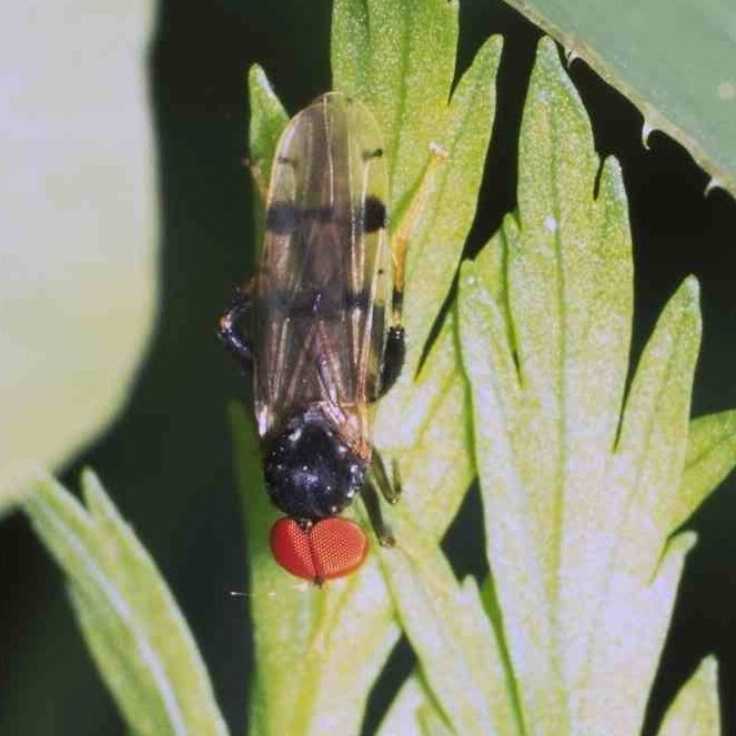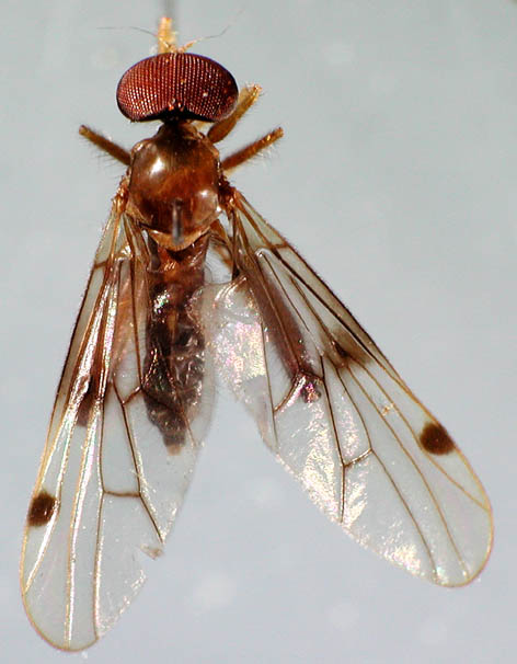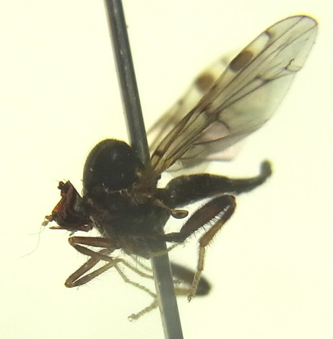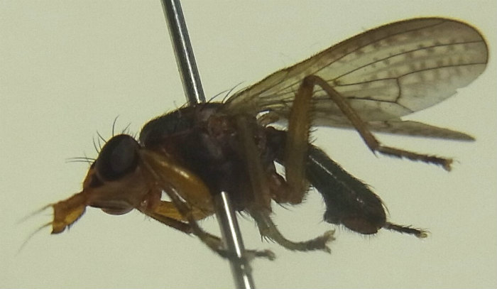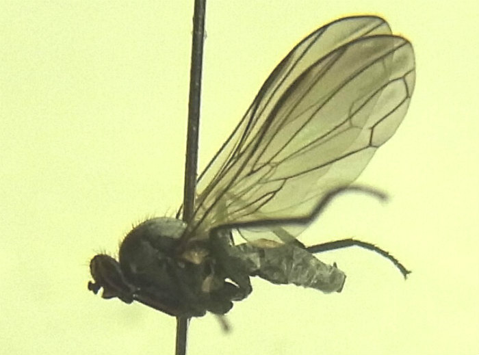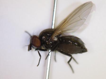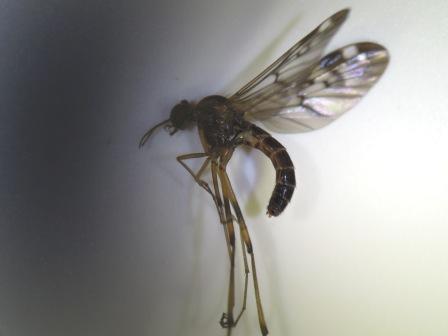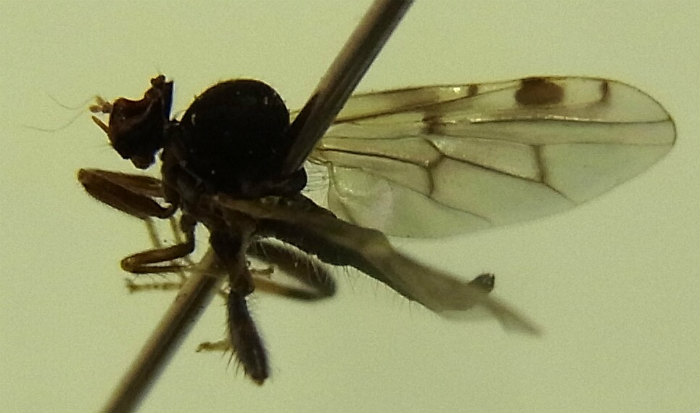 2012.3.24菅平高原で採集したものです。気温はほぼ0度近い状態ですが、日差しが地表に届くようになると葉の上でSuilliaと思われるトゲハネバエとともによく見かけます。本種の記載論文を読んだのですが、翅に関しては完全に一致し、ほかもある程度一致していました。ご存知の方がおられましたら教えてください。