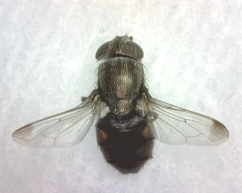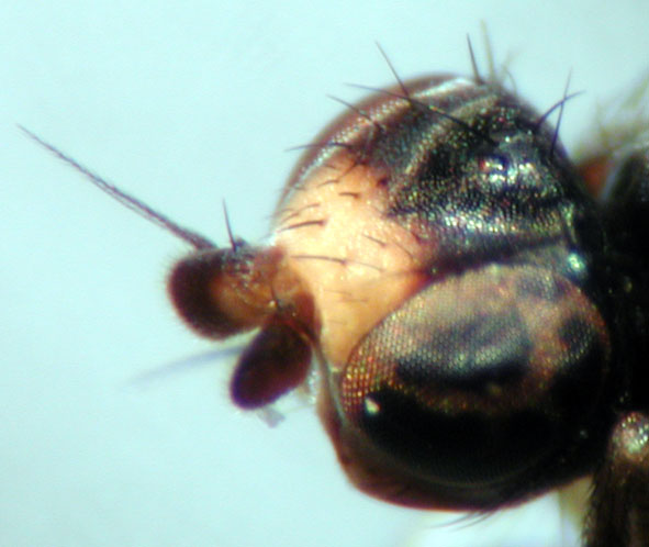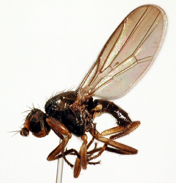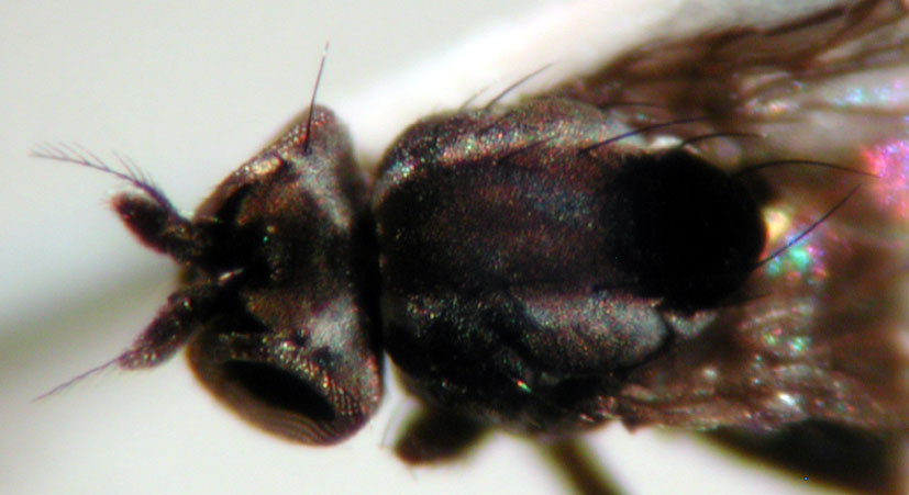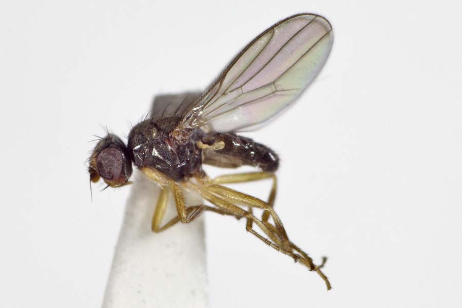 写真で見ると,私が思っているParydra属とはイメージが異なりますが,私も実物をほとんど見ていないので判断出来ません. 一応,Parydra属のFJの検索を張っておきます. Key to the Japanese species of genus Parydra l . Bristles on head and mesonotum strongly reduced; scutellum with four marginal papillae; costal index over 2.5 (Subgenus Paryu'ra) ・・・P. aquila( P. bituberculata sense Miyagi) - Bristles on head and mesonotum well developed; scutellurn without papila; costal index less than 2.5 (Subgenus Chaetoapnaea)・・・・・・・・・・・・.2 2. Small species, less than 3.5 mm., in length. Oral margin in frontal view, apparently convex centrally; face in lateral view most prominent at oral margin. Head a little shorter than the height. Veins unduated; costal index at least 2.0: 1.・・・・・・・・・3 - Large species, at least 3.5 mm., in length. Oral margin in frontal view nearly horizontal; face in lateral view most prominent at epistoma. Head as long as or a little longer than height. Veins all straight; costal index less than 2.0: 1.・・・・・・5 3. Antennae, apical part of femora and tibiae yellow; face convex distinctly above epistoma; costal index 1.2: 1. Head index 3: l.・・・・・・P. pacifica, sp. nov. - Antennae, femora and tibiae black, face not convex.・・・・・・・・・4 4. Tarsi black; wings yellowish brown;last section of fourth vein arched; second longitudinal vien without apical appendage; costal index 1.4:1 . Head index 3.5 : 1 .・・・・・・・・・・・・ P. lutumilis, sp. nov. - Tarsi yellowish-brown; last section of fourth vein straight; second longitudinal vein with an apical appendage; costal index 1.8: 1 . Head index 3.4:l . ・・・・・・・・・P. quadripunctata (Meigen) 5. Large species, at least 4.0 mm., in length. Scutellum with a well developed papilla at apex; one pair of well developed scutellars apically. Head index 1.8:l. Costal index 2.5 : 1.・・・・・・P. pulvisa, sp. nov. - Small species, less than 4.0 mm., in length. Scutellum without apical papilla, if present very small; two pairs of marginal scutellars, the dorsolateral being weaker. Head index 2.0: 1 . Costal index 2.6: 1.・・・・・・・・・.6 6. Mesonotum shining black, with yellowish brown sparse pollen, dorsal stripes of mesonotum absent. Face and clypeus witish gray pollen; an apical papilla of scutcllurn present, sometimes very weak.・・・・・・・・・P. alvipulvis, sp. nov. - Mesonotum with dorsal stripes;scutellum without apical papilla.・・・・・・P. japonica, sp. nov.