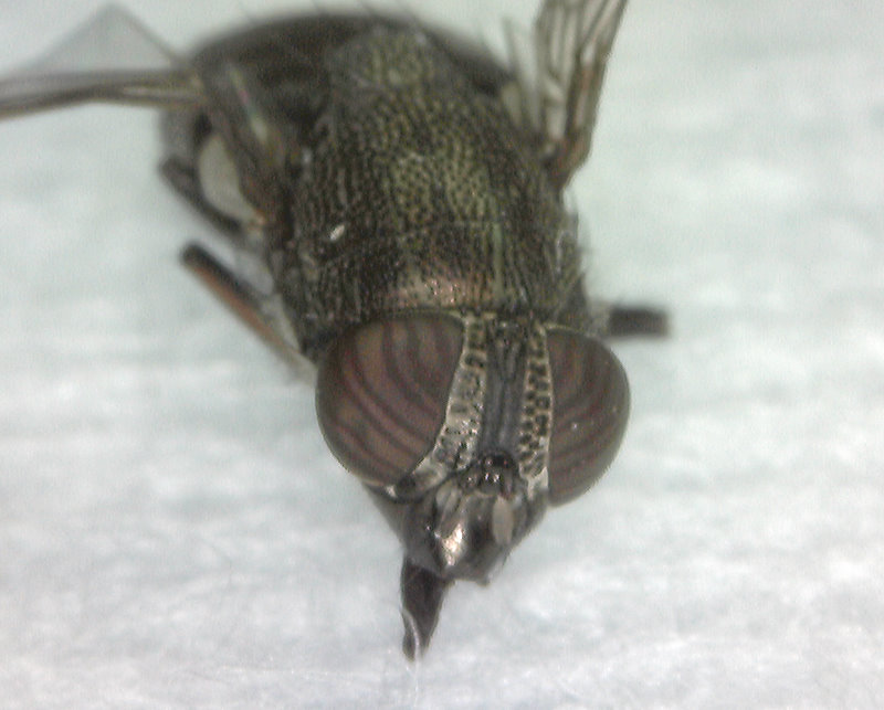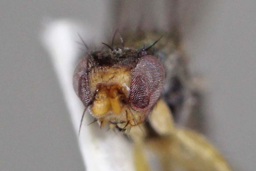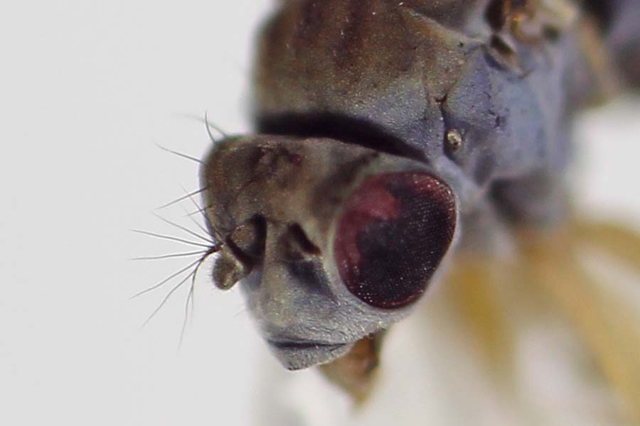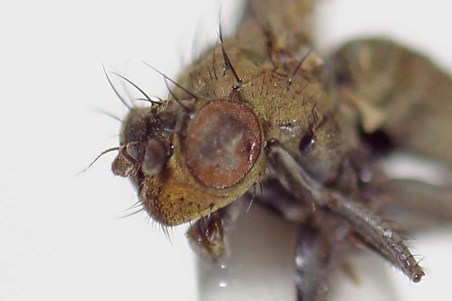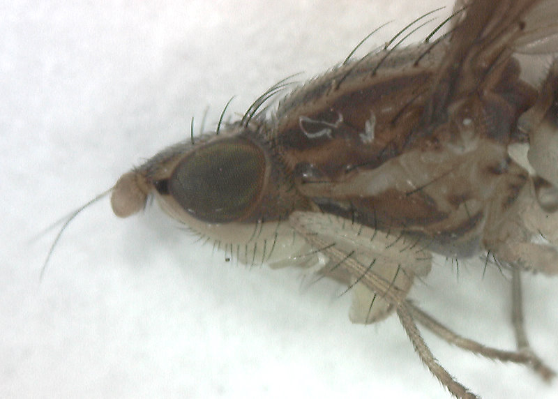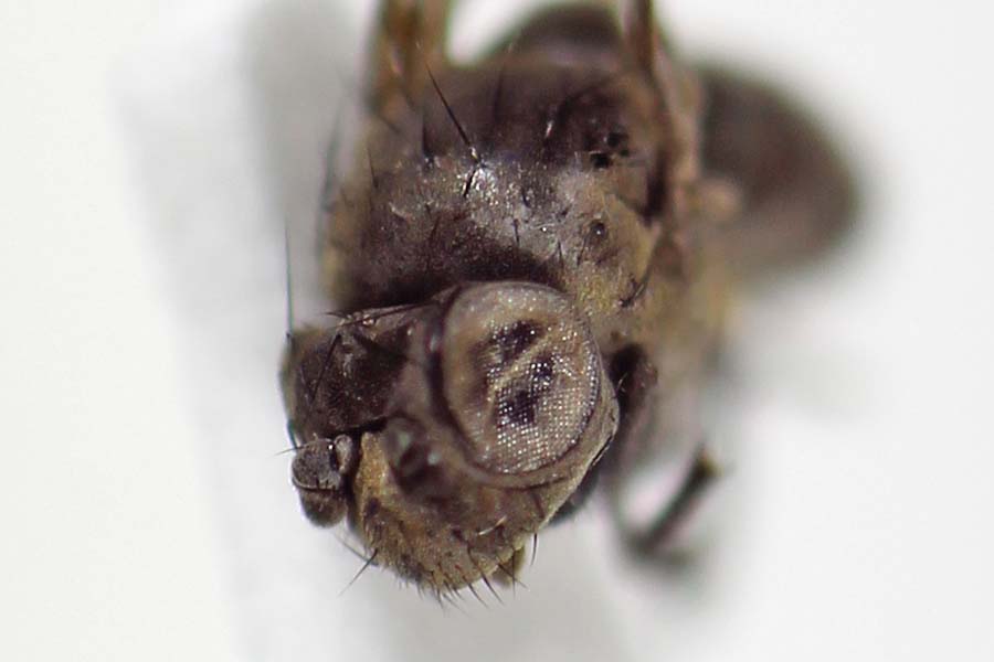 ご教示いただいたHPで検索すると、4までいき、その後なのですが… ・触角が尖る…私の個体は尖っていないです ここまではいいと思うのですが ・額眼縁剛毛は前傾する…これは頭部中央の毛のことでしょうか、そうだとすれば短い毛は前傾しています(フォトでは分かりにくいですが) 迷ってしまいました…