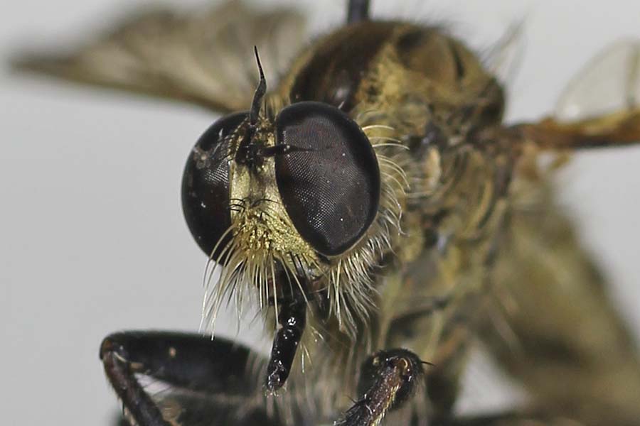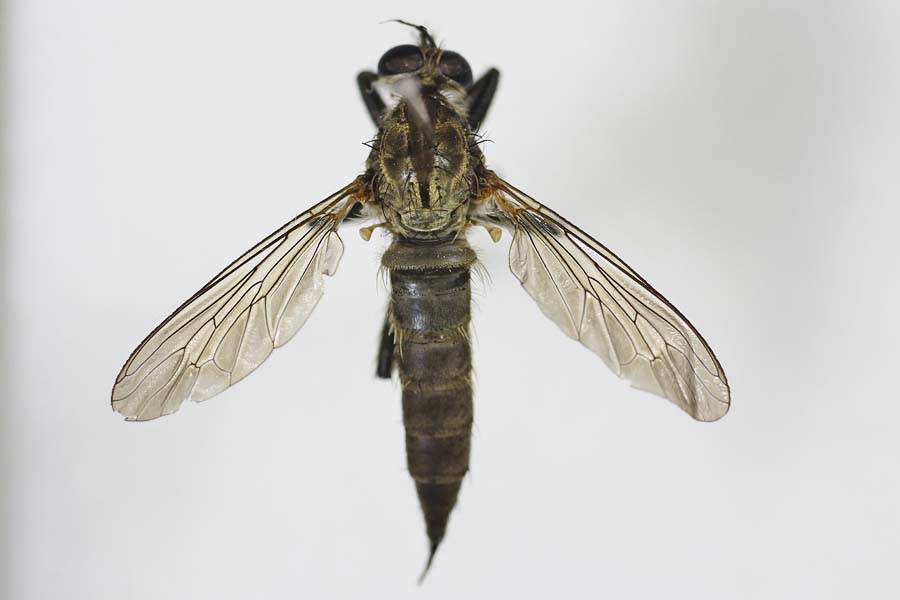 6月に岡山平野の河川敷で採ったEutolmus sp.♀です。ウスグロムシヒキ Eutolmus rufibarbisに似ているものの、腹端の形などが違います。 河川敷などでは結構普通にとれる種です。 正体がわかるでしょうか?
