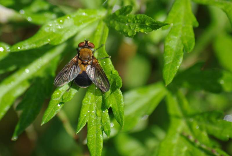写真の寄生蠅はすべてヤドリバエ科Tachinidaeの種であることは間違いないでしょう。日本には数百種以上のヤドリバエ科のハエが生息していると言われています。そして、ヤドリバエ科の同定はごく一部の顕著な種を除くと、専門家が標本を検して初めて可能だろうと思います。