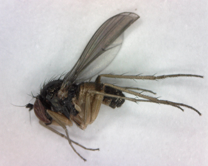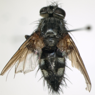 ヒトリガの幼虫を飼育していた際、双翅目の幼虫が表皮を食い破って出てきました。それの成虫を同定しようとしたのですが、絵合わせくらいしかできず挫折しました…。 出来れば種名まで教えて頂けると幸いです。 宜しくお願い致します。 ヒトリガ幼虫の採集場所は北海道札幌市で、 採集日は2011年6月21日-7月14日です。 個体は70%アルコールで保存しており、状態は良くありません。