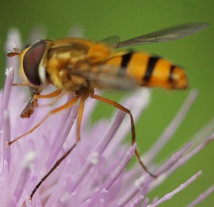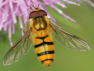 いつも通り,撮影は阿武隈山地南部ですか? エダシゲオビヒラタアブかシバカワオビヒラタアブだと思います.判別には,高倍率で翅の第2基室周辺の微毛の分布状態を見る必要があります.(腹部斑紋と脚部の色には変異があります.)