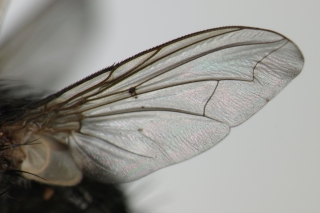 双翅目でも,ハエ類の仲間の軟化は難しいです. 軟化展翅は出来ますが,体の剛毛の脱落が起きやすく,剛毛の有無や長さの比率を必要とする種類の同定が困難となります. 軟化方法はNo.5240,No.2574 等を読んでみてください. 新訂大図鑑の科の検索でも,多数の用語が出てきますが,初心者には解り辛いので,概念的な絵解き検索のHPを紹介しておきます. Key to the Families of Diptera Associated with Cow Dung http://www.nadsdiptera.org/FFP/dungfly/dungfly.htm 1枚目の写真の種類をこの絵解き検索で調べると, ・触角の形から,(Brachycera短角亜目) Go to 11 ・Ptilinal fissure(額のう溝)の有無でkey 16と11に分かれます.(ここでは,写真からの印象で16へ行きます) ・Couplet 16で,また写真では見えない特徴を判別しなくてはなりません.ここで有弁類17と無弁類22に分かれます.(ここでも,写真からの印象で17へ行きます) ・Couplet 17で,meron(下側板)に剛毛列があるかどうかでkey 18と19に分かれます.残念ながらKT様の写真では判別できません. この検索では,18はCalliphoridaeクロバエ科,19はSarcophagidaeニクバエ科がゴールとなっていますが,KT様の翅の写真から翅脈R4+5とM1+2がほぼ並行で,翅端でわずかに閉じ気味になるので,仮に有弁類であるとしたらMuscidaeイエバエ科の1種の可能性が高いと私は思います.