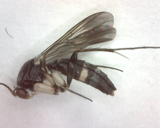 本種の越冬態は知りません。もともと熱帯系のキノコバエで(沿海州にも1種分布しますが)、どの程度日本本土で越冬しているかわかりません。九州でも春にはほとんど見られず、夏に増えてきます。特に、前日までまったく見なかったのにある朝突然、庭の草木に多くの個体が静止している、というようなこともあって、私は自力か風に乗るのか知りませんがmigrationの可能性も否定できないのでは、と思っています。