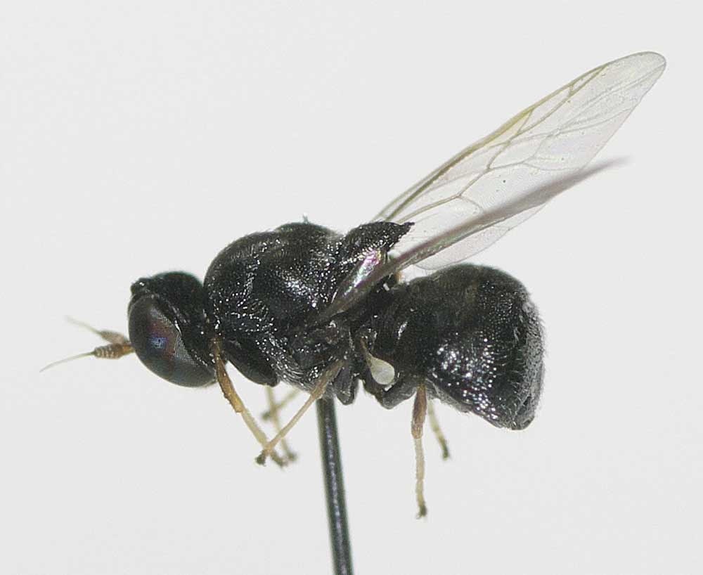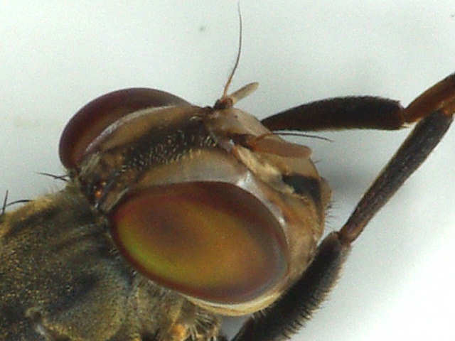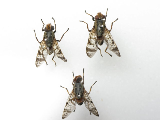 腿節の色が見えないので辛いのですが,上の2頭はマツダマダラヒロクチバエ Euprosopia matsudai Kurahashi, 1974と思われます. 下の個体も同種の♀と思いますが,もしかするとオオマダラヒロクチバエ Euprosopia grahami Malloch, 1931の可能性もあります. |