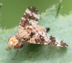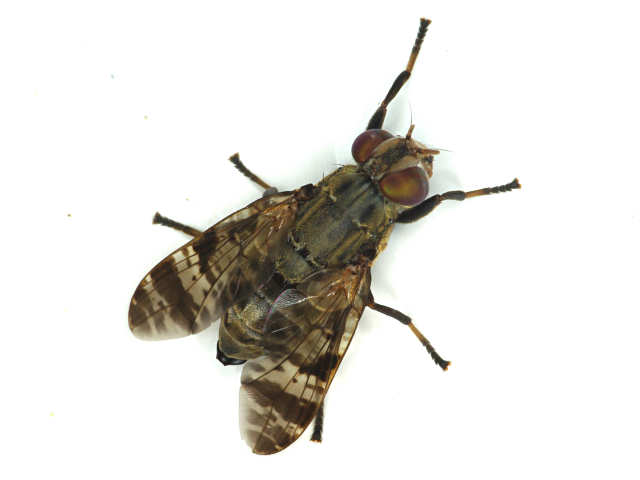 私としては,まあ様のご指摘通りOxyna属の1種ではないかと思います. 斑紋の細かなところが若干異なっていますが,Oxyna stackelbergi Korneyevという種類が日本から記録されています. 市田(1994)の青森県のミバエ科ではO. amurensisを記録していますが,斑紋は本種とほぼ同じです.市田も再検討が必要と記しています. なお,市田が参考にしたKorneyev(1990)では,日本産はO. amurensisとなっているようですが,Korneyev et Ovchinnikov(2004)による極東の昆虫の検索では,日本の北海道・本州に分布するのはO. stackelbergiとなっています 詳しくは,ほげさんのコメントを待ちましょう.