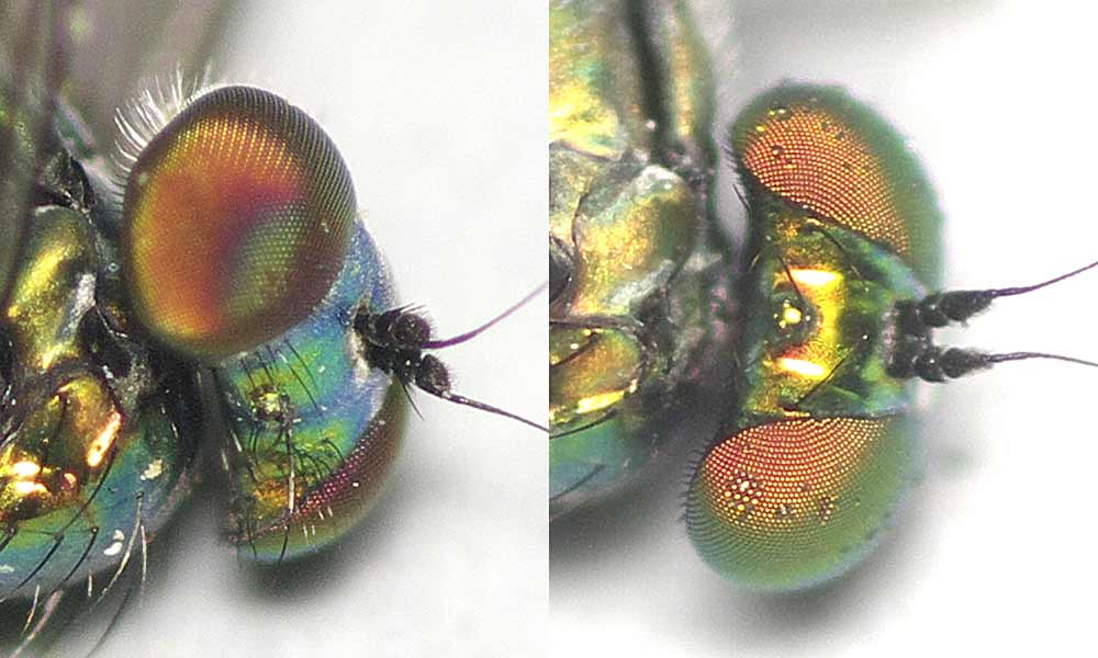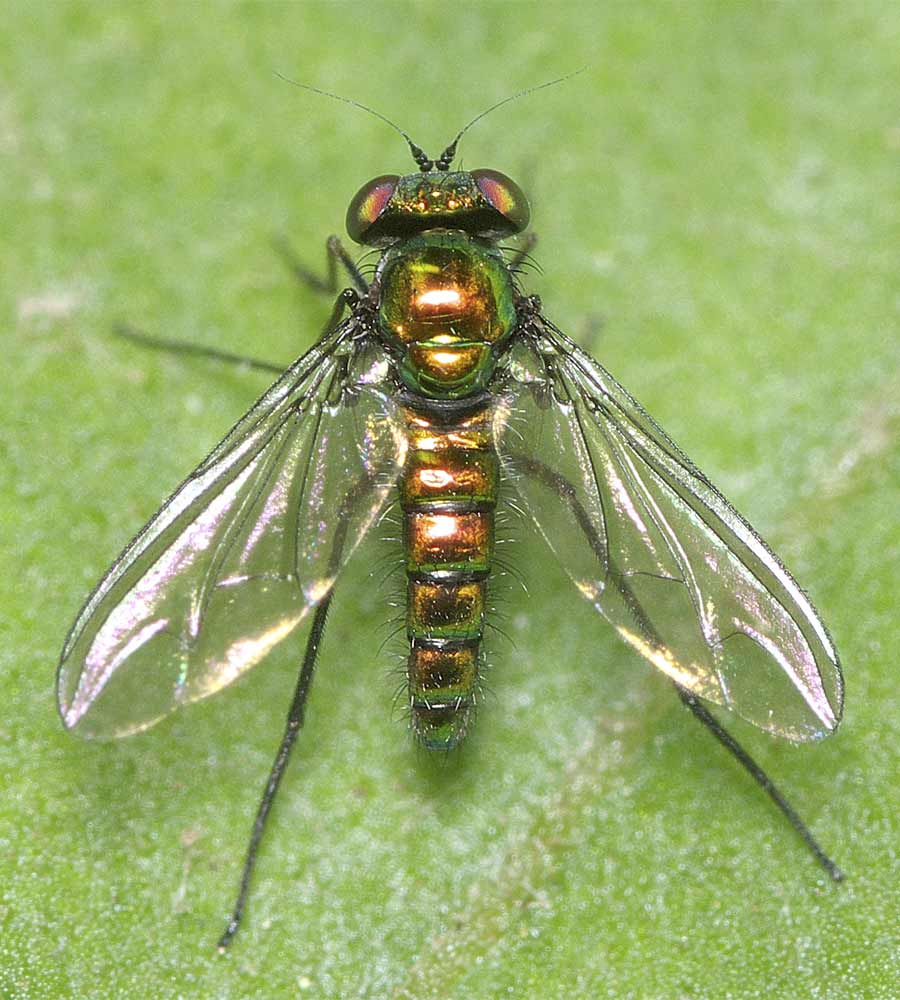 ミズギワイエバエを採集しているという事は、当然同じ環境に出現するミギワバエ科も採集しております。ということで、順次、採集しているミギワバエ科も紹介していきます。まず、キタミズギワイエバエと同じ大野池で多く採集された Setacera viridis。池のほとりの泥のぬかるんだ水溜りに群れて、泥の表面に繁殖した藻類を盛んに食んでいます。陽光の元ではまるでキンバエ類のように輝いて見えます。 先の画像はSetacera viridisの♂でしたが、こちらは同種の♀です。腹部の後方下面にやはり産卵用と思しき『熊手様構造』が突き出ているのが見えますでしょうか。Setacera viridisは泥中産卵種で、幼虫も成虫の摂食域と同様の環境で育つのではないでしょうか。
