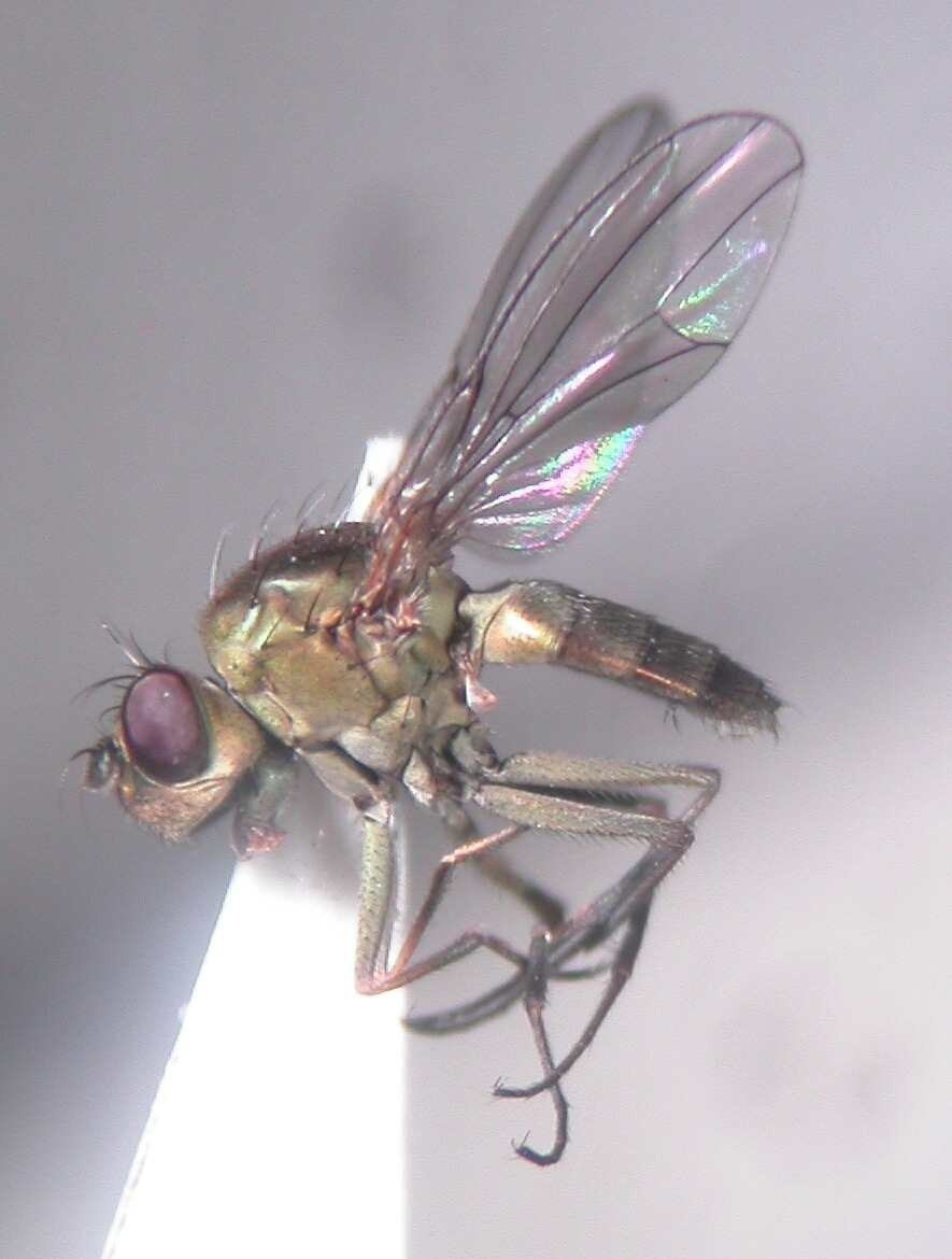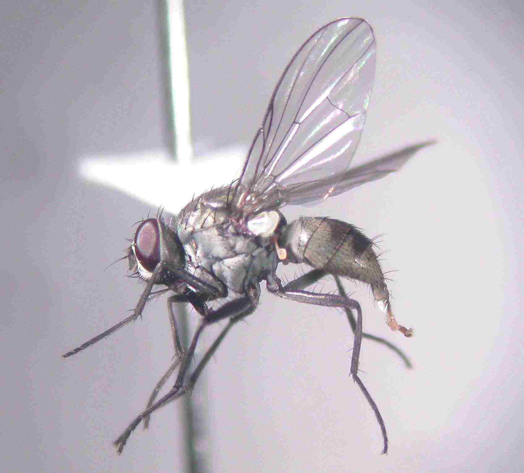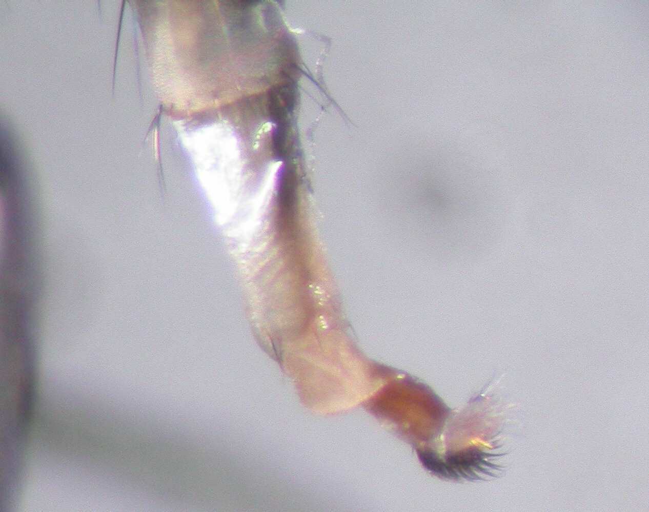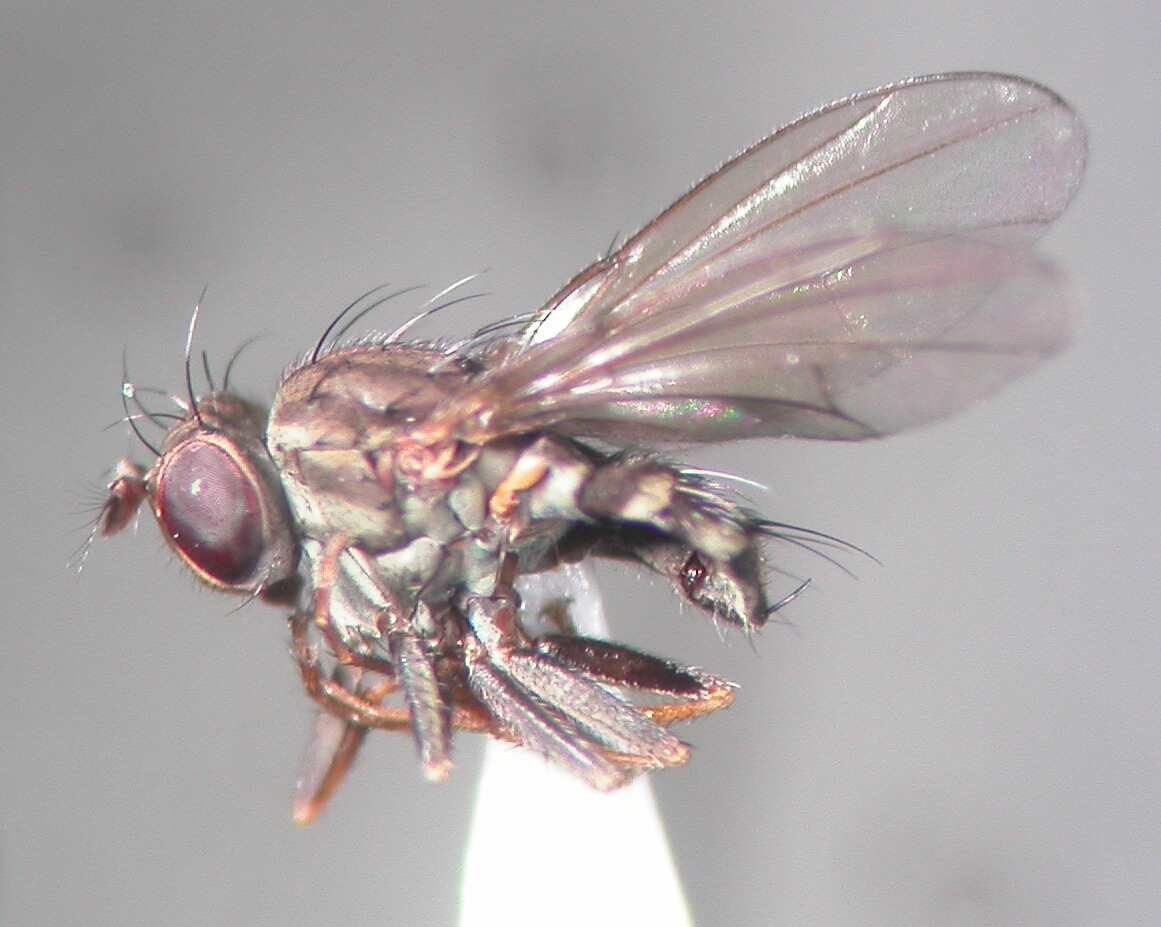 こちらは、北大を貫通して流れるサクシュコトニ川の出口のヨシやガマが生い茂る湿地と大野池の双方でのスウィーピングサンプルで優占して出現した Notiphila (Agrolimna) sp. の♂です。まだ種までは落とせておりません。