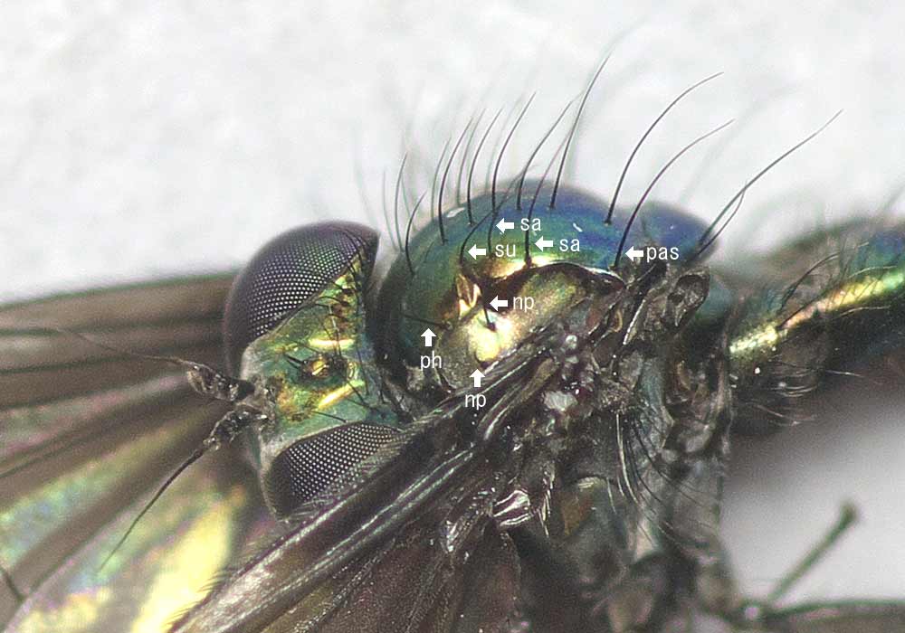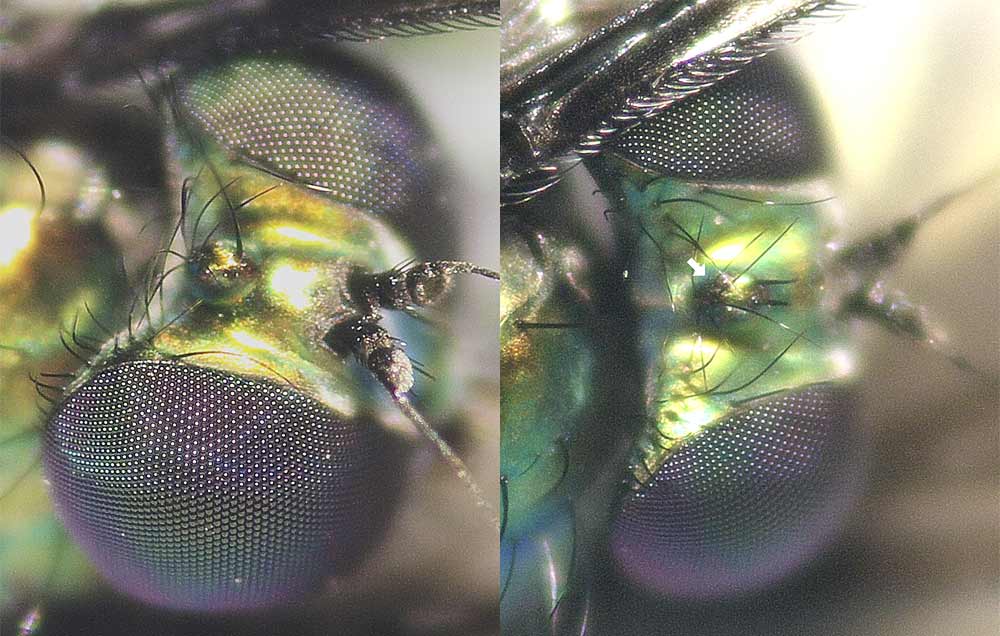 2.複眼に長毛が全面に疎(?)に分布(密ではないが、ある程度ある)