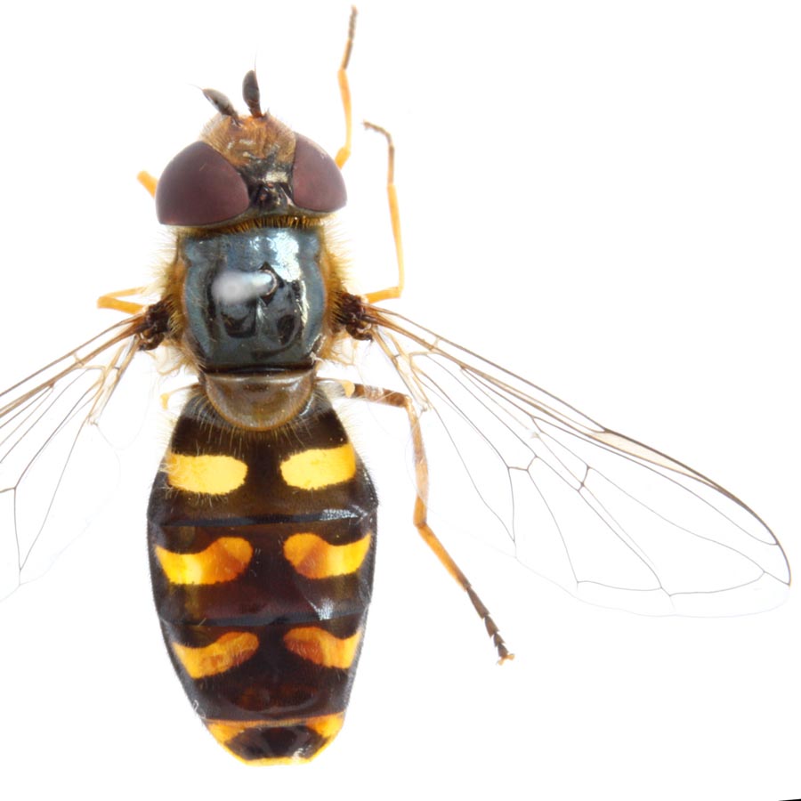 Eupeodes属の種別の特徴が出やすい部位は,額と腹部腹面の暗色斑の形状,翅の微毛の分布状態等ですので,注意してみてください.