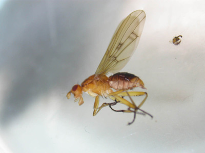 ハネオレバエ科Psilidaeと思いますが、今直ちに正確な同定結果を示すことができません。