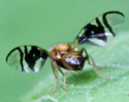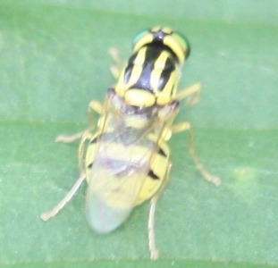 どうやら場違いなお尋ねではなかったようで、とりあえず一安心。 生前のマクロ動画はこちらになります。(1:52) よろしければご覧下さい。 http://www.youtube.com/watch?v=6Cu8hQqJ9gQ 微妙なアングルや体のパーツはもしかしたら意外に動画の方がよく写ってるかもしれません。 初めは朝露を飲んでいるのかと思ったのですが、目を凝らしても葉上に朝露は見えませんでした。 アノニモミイアさんの仰るように甘露をなめていたのかもしれません。 尻を高く上げた姿勢で翅を広げたまま小刻みに震わせている行動が気になりました。 何か本種に特有のディスプレイ行動なのだろうか? 白い鱗板の下で小さな平均棍をピコピコ上下させていました。 ケンセイ様 ニクバエ科は胸背に3本の黒縦線があるとのこと、一つ勉強になりました。