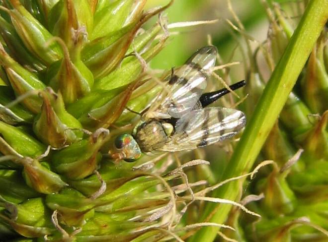 Aclerisさんの助言で「みんなで作る双翅目図鑑 画像一括閲覧ページ」を探してみると、素人目には Cylindromyia pandulata と似ている気がしました。