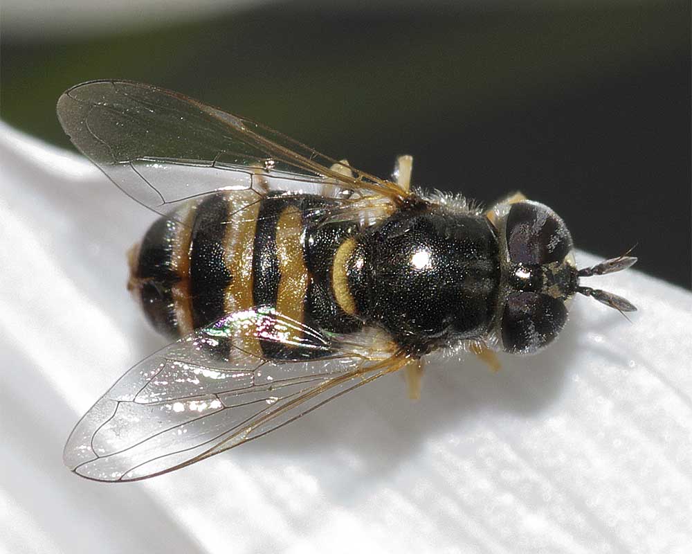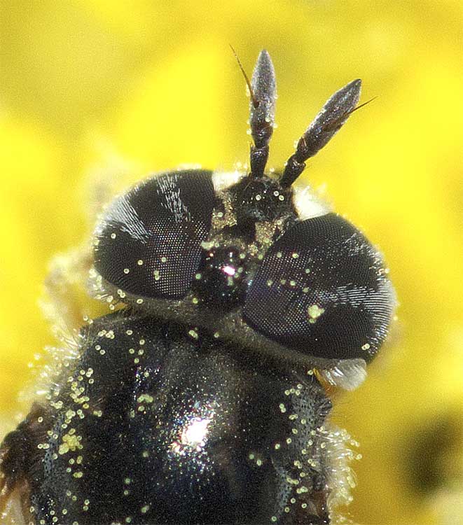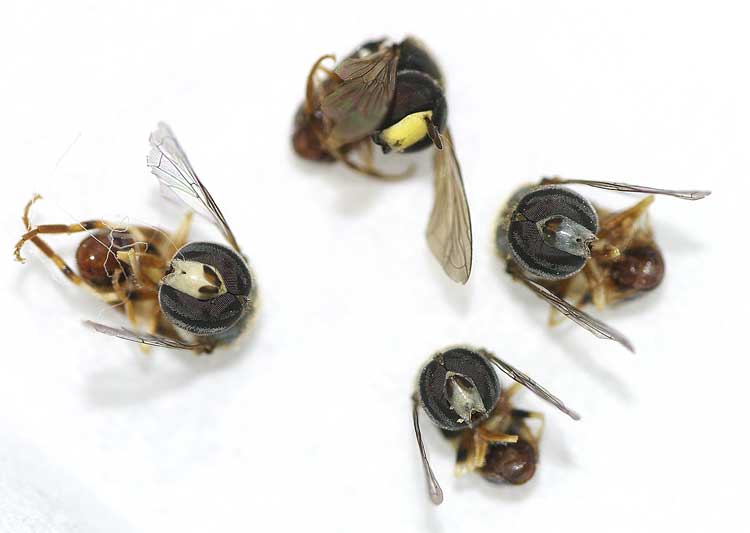 ご推察の通りシマバエ科のTrigonometopusかその近縁属の種です。これに関しては本掲示板のNo. 5103でアーチャーンさんが「Trigonometopusの1種?}という投稿があり、このスレッドをご覧になると参考になるかと思います。