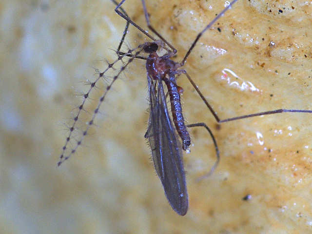 お忙しい中、大変ありがとうございます。 これを見たのは例の洞窟です。紛れ込んできたのでしょうね。 それにしても面白い触角をしていますね。撮影時は「あ、触角が長い」ぐらいにしか見えませんでしたが、PCで拡大して初めてこのような形状であることがわかりました。 |