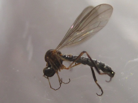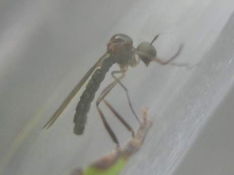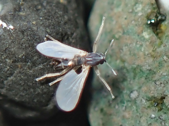先日セダカバエ(セダカオドリバエ)科Chvaraea属を教えていただきありがとうごじます! すぐ近いばしょほぼ音字場所(一つながりの同じシダ群落)で、採集しました。ハネオレバエか、ハネオレホソバエかな?と思いましたが、または全く別の科のハエでしょうか??