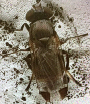 セダカオドリバエ科Chvalaeaと同じ場所で同じ時期にとれました。ノミバエにしてはトゲトゲしてなくて何だろうと思っていたら、北隆館図鑑に載っているヒコサンアリヅカノミバエAenigmatias gotoi Disneyに似ています。 |