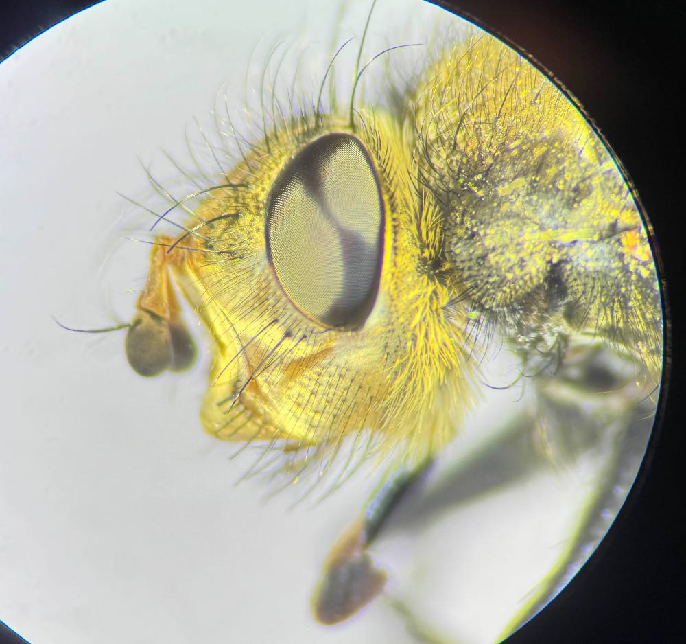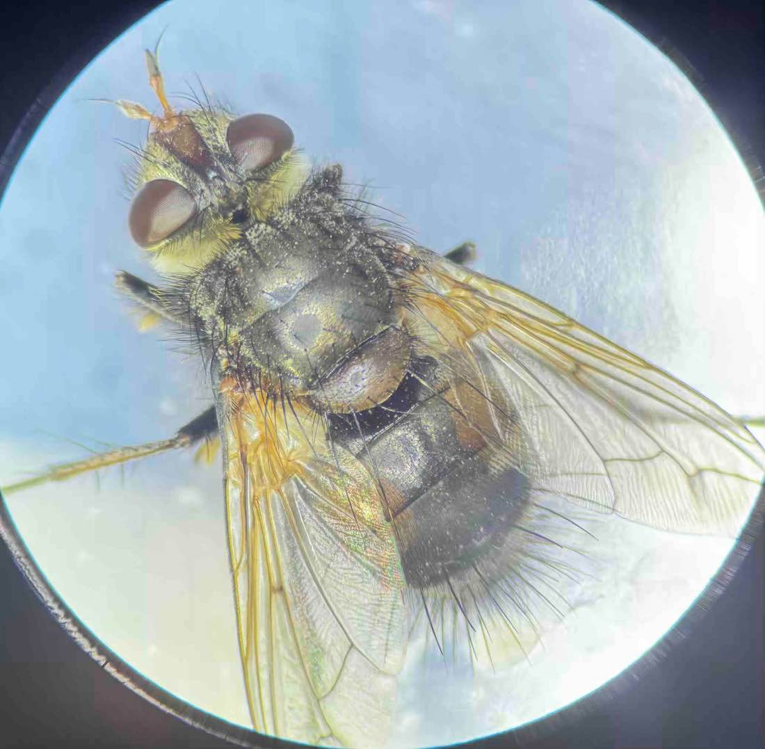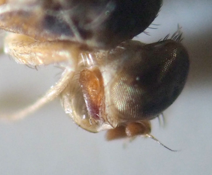 ありがとうございます。 ぜひよろしくお願いいたします。 よく考えてみれば敦賀には国際ターミナルがあるので、中国あたりから船に乗ってきた外来種なのかもしれないですね。 その後もう少し検索して、Elaphromyia属のことが書いてある論文が見られるのに気付きました。https://www.researchgate.net/publication/336317967_A_review_of_the_fruit_fly_tribe_Pliomelaenini_Diptera_Tephritidae_Tephritinae_in_the_Indo-Australian_Region この論文ではincompletaがpterocallaeformisのシノニムとされていて、新訂原色昆虫大図鑑はこれに従っているのかと思いますが、日本産昆虫目録データベースではincompletaナガバネケブカミバエ(改称)となっているのは、その後また変更があったということなんでしょうか…? まぁとりあえず、今回のが該当しそうな日本のpterocallaeformisと台湾のmultisetosaの違いはpalpiの黒色剛毛の有無だと書いてあるので、ちょっと顕微鏡写真を撮ってみました。 palpiというのがどれのことなのかよく分からないのと、相変わらず撮影技術が追いついてないので、これで判別できるのか分かりませんが…。