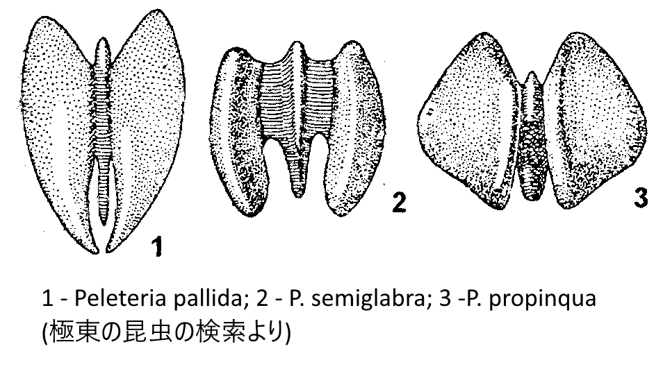 返信ありがとうございます. メールのほうもありがとうございました. 極東ロシアの文献、早速読んでみました. これは、なんと、素晴らしい文献ですね!! ただ、ロシア語だらけでとても難解です… DeepLを使って時間をかけて読んでいきました. 自分は、大学で第二外国語としてロシア語を選択しているので、今後、大学の授業でロシア語を読めるよう勉強します. Peleteriaの検索表では、まず、prementumが長くない点(長さは幅の4倍くらい)とlateral scutellar setaが欠如している点から、couplet2に進みます. かなり絞られます. あとは、P. pallidaとP. semiglabraとP. propinquaの交尾器の図を比較してみるのですが、やはりpallidaが一番近いようです. 少なくとも、semiglabraやpropinquaではなさそう?に思います. ただ、pallidaは、中国蠅類にも極東ロシアのほうにも、「腹部第五背板側面に橙色の斑紋を持つ」という内容の記述がありますので、この個体はpallidaでもなさそうですね. 埼玉県産ヤドリバエの論文は、いつも見るようにしているのですが、今回は忘れていました! 本当ですね、未記載種がいますね. しかも、多数個体得られていますね. 注釈には東京からも得られていると書かれています. この未記載種がどういう形態のものかは全く分かりませんが、僕が得た個体がこの未記載種と同一のものである可能性は十分あります. 情報ありがとうございました.