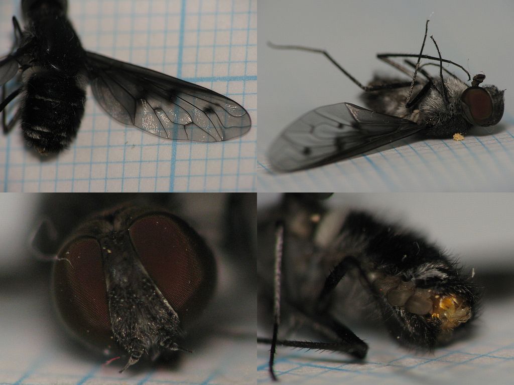 写真の個体はいずれもホシツリアブだと思います。 参考になる論文に次のものがあります。 Liu, Nagatomi & Evenhuis 1995 Genitalia of the Japanese Species of Anthrax and Brachyanax (Diptera, Bombyliidae) Zoological Science 12(5):633-647. この論文はネット上にPDF等が公開されていますので、ごらんになってみて下さい。 http://www.bioone.org/doi/abs/10.2108/zsj.12.633