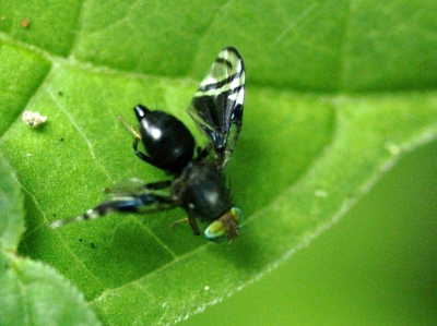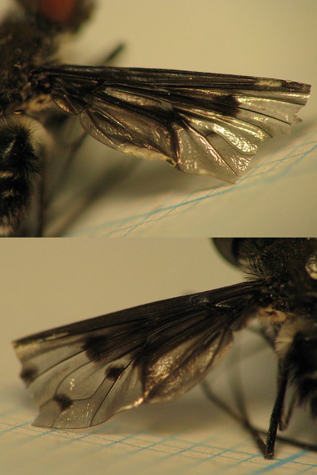 アノニモミイアさん、どうもありがとうございます。ツリアブもparasitoidですよね。 寄主の蜂に繭を作らせてから殺す(捕食する)ところが策士です。 うーむ、コウヤツリアブなのかな? 擦り切れた状態でお恥ずかしいのですが、個体#1の成熟した翅の写真も一応載せておきます。