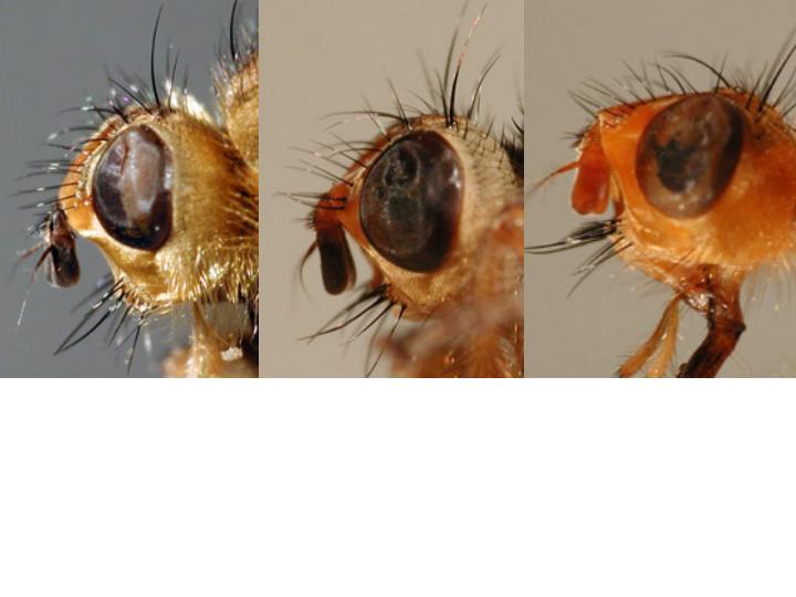 なお、ネットでScathophaga stercoraria と入れれば、F. Sifner(2008)の A catalogue of the Scathophagidae (Diptera) of the Palaeractic region, with notes on their taxonomy and faunistics. Acta Entomologca Musei Nationalis Pragae, 48(1):111-196 のPDFを見ることができます。 日本のフンバエ科も諏訪先生や広永さんたちが早く全貌を明らかにしてもらいたいところです。 福原・倉橋の前記論文に出ている触角の色彩によるScathophaga3種について、左がヒメフンバエ、中がキアシフンバエ、右がキバネフンバエに相当するのかと、思います(少なくとも、ヒメ、キバネはハエ男さんが示した交尾器と一致しています)。これらの標本の翅の色彩、斑紋もほぼそれらの種に該当します。 ハエ男さま、三枝豊平さまお忙しいところ懇切丁寧なレスありがとうございます。 ご紹介のPDFは一応ダウンロードしてみたものの、専門的過ぎてとても私には読みこなせないようです。 今回せっかく採集したペアは持ち帰るまでに容器内で体中がゴミだらけになってしまったので、少し写真を撮っただけで捨ててしまいました。 しかし今後はどこに注目すべきか分かっただけでも収穫です。 少しでも自力で観察検討してみることにします。 念のために生前の映像から♀の触角のアップを切り出してみました。どんなもんでしょうか。 今の私に分かるのは「キバネは否定できそう」ぐらいですね。 ワンランク・アップするために「虫♂のゲニ出し」に漠然と興味(憧れ)はあるものの、素人にはやり方が分からないでいます。 どんな器具(ピンセット?)でどこをどう引っ張り出すのかイメージが沸きません。 一度会得してしまえば意外に簡単なのかもしれませんけど。 「猿でも分かるゲニ出し法」を解説してくれるハウツー動画がどこかにあればなー…(無いものねだり)