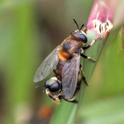 なお、確か本属では後に交尾した雄が、雌の体内にある前に交尾した雄の精子を抜き出す行動を行なう、と言われています。 幼虫は糞の中で生活し、成虫は糞の上や周囲で他の軟弱な昆虫を捕らえて摂食します。