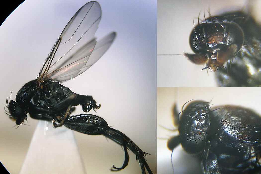 ちなみに、クロハススジミバエの学名のスペルのややこしい問題に関しては、この掲示板でも昨年の8月に話題になっています。ちなみにそのときの生態写真はクチジロハススジミバエ A. leucochila だったようです。 http://diptera.jp/usr/local/bin/perl/dipbbs/joyful.cgi?list=pickup&num=4783