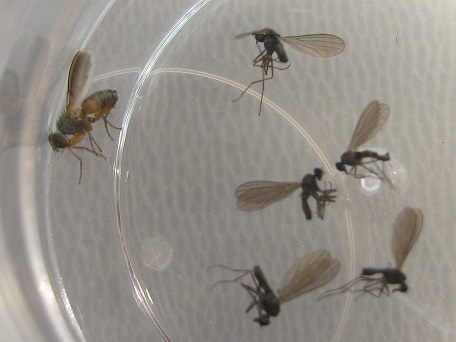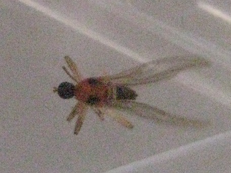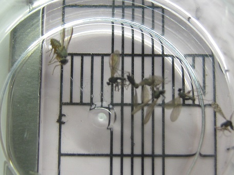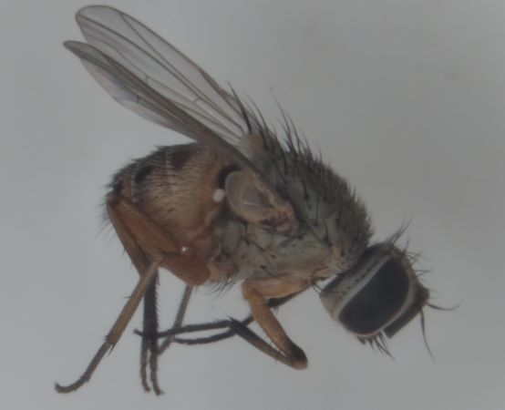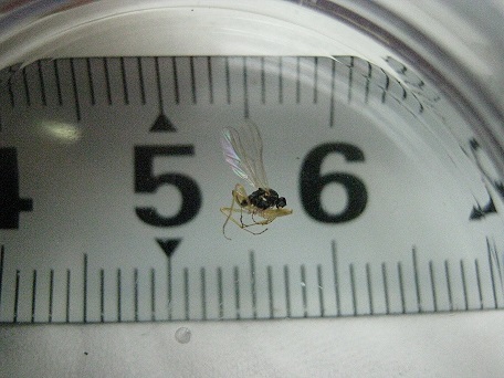 回答ありがとうございます。 ヤガの被害にあった温州ミカンから羽化したもので、イエバエ科かハナバエ科と考えていましたが、雄の複眼間隔が広いので困っていました。 |