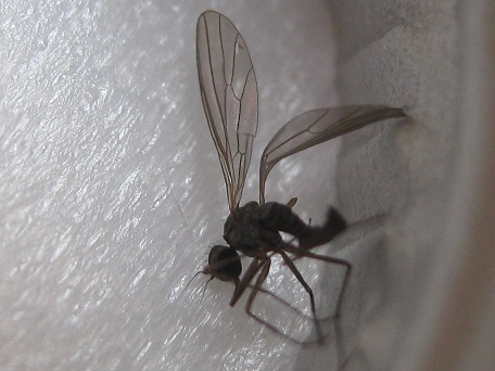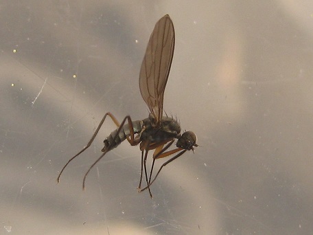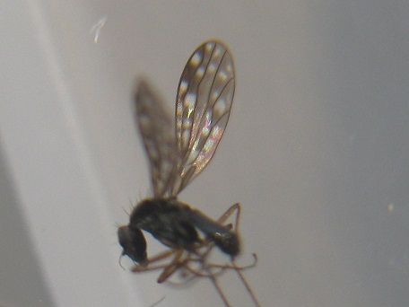 三枝(1995)日本産双翅目図解検索シリーズ1 オドリバエ科によれば,中脚が太くなって捕獲脚になるのはPlatypalpus属だけのようです. 日本産Platypalpus属で学名がついているのはP. itoi Freyの1種だけですが,三枝豊平氏によると60種以上が日本に棲息しているそうです. http://diptera.jp/usr/local/bin/perl/dipbbs/joyful.cgi?list=pickup&num=3889#3889