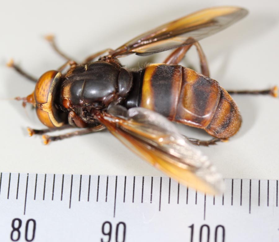 三枝先生、ご回答ありがとうございます。 5731は確かにジョウザンナガハナアブのメスです。北国に多い大型種で、ちょうど今頃の時期に、山地のオニシモツケ、ノリウツギ、シシウドなどの花によく見られるものです。 私も連休中北海道で採集をしておりまして、本種もいくつか採ってきました。関東以西では珍品ですが、北海道では普通種の印象ですね。 この種が飛翔している姿は、キイロスズメバチ(北海道では基亜種のケブカスズメバチ)に酷似していると思います。静止した姿を見ると、確かにアカウシアブにも似て見えますが、やはり擬態のモデルはキイロスズメバチであろうと思っています。