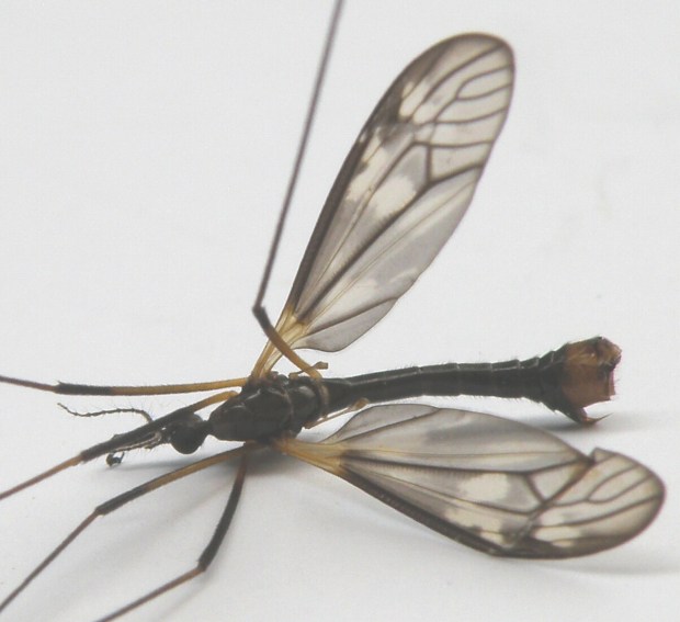 改めて家の標本と見比べて見ますと、九州や沖縄から記録のあるLibnotes puella Alexander, 1924と同じもののように思えます。Libnotes属のガガンボは夜、カブトムシを探しに行くとしみだした樹液の近くの樹幹で体を震わせているのを見ることができます。ただし、観察不足で、樹液の近くで何をしているのかは知りません。