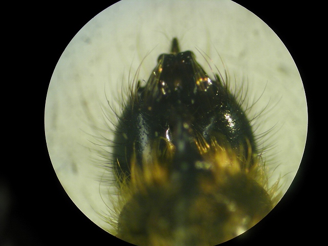 ♂ゲニの形状もOKですし、第3腹背板(見かけ上の第2腹背板)のヘリに長い剛毛が確認できることからもカエルキンバエでOKです。 最近は幸手市あたりで確認されていることから、利根川水系では間違いなく発見されるものと思っていましたが、やはり渡良瀬遊水地で出ましたか・・・ 花に来るのは圧倒的に♂が多いようですね。 というよりはこれまでに♀の採集例が極めて少ないのも本種の特徴であり、♀がどのような時期に出てくるかも十分にわかっていないキンバエなのです。