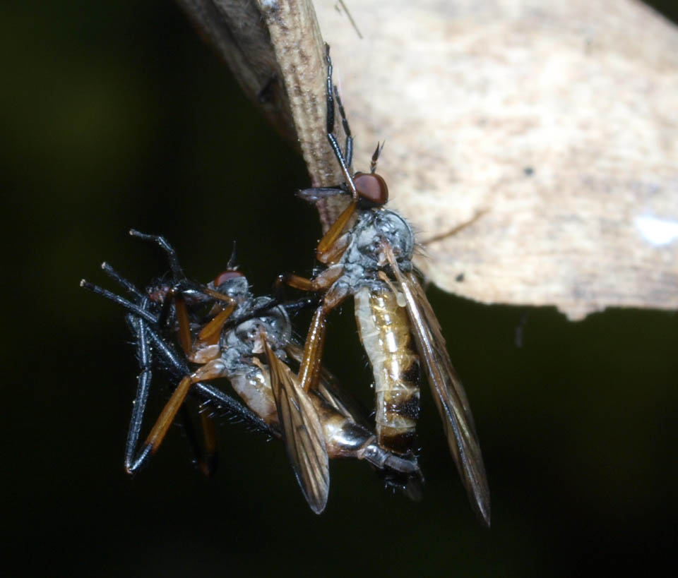 お世話になっております。 またコメントありがとうございました。 和名はweb上のみんなで作る双翅目図鑑を参考にしました。 web上のムシヒキアブ図鑑ではsp.2だと思いましたのでフタトゲオだと勘違いしました。みんなで作る・・・の方とムシヒキアブ図鑑との対応が違うのですね。これで合点がいきました。「はなあぶ」の2003が手元にないので何とも言えないのですが、市毛様がご教示いただいた最下段のケブカトゲオがsp.2となるのでしょうか? ご教示いただいたものですとsp.1が2つ出てきますが?? ご教示頂ければ幸いです。