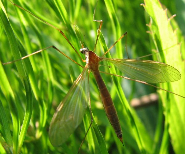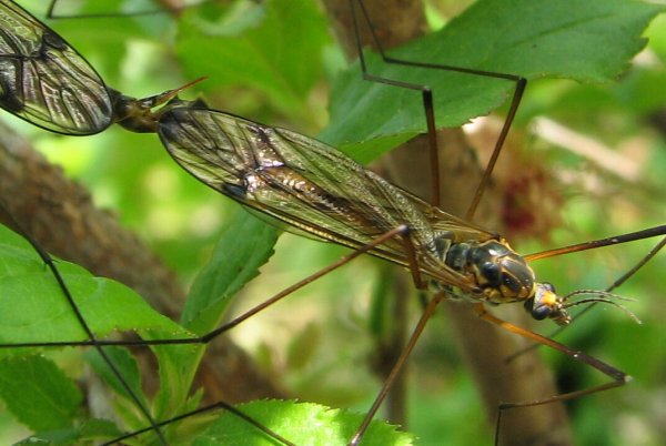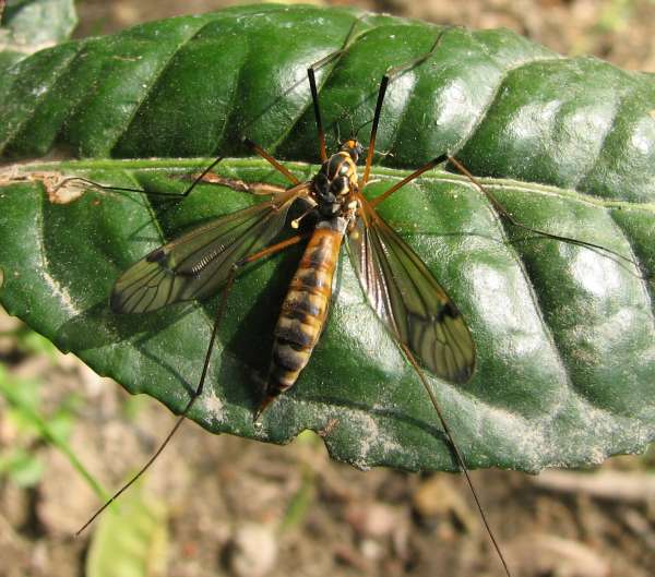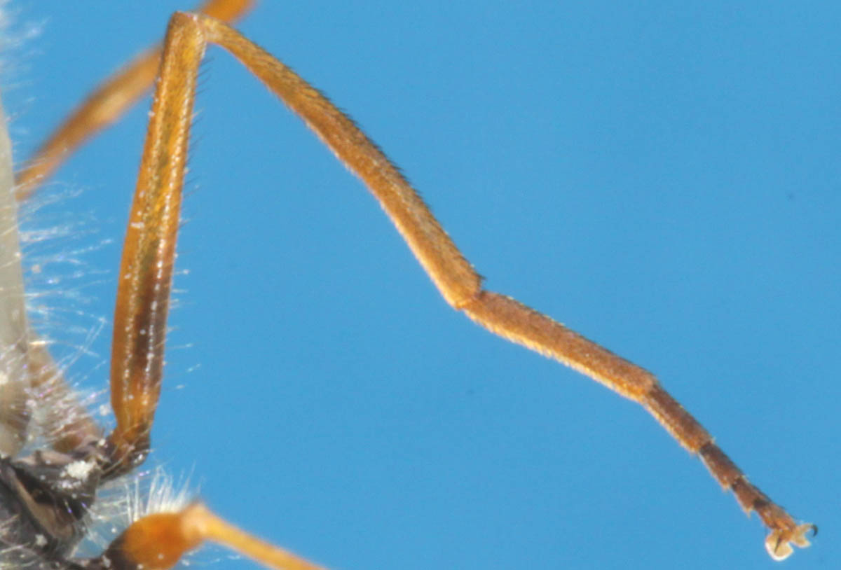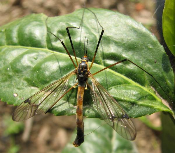 キゴシガガンボLeptotarsus(Longurio) pulverosusは,翅が暗色で非常に長い脚を持ったガガンボです. 生時の腹部のオレンジ色も顕著で,日本産ガガンボの中でベストテンに入る美麗種だと思います. みんなで作る双翅目図鑑のガガンボ頁に画像があります.