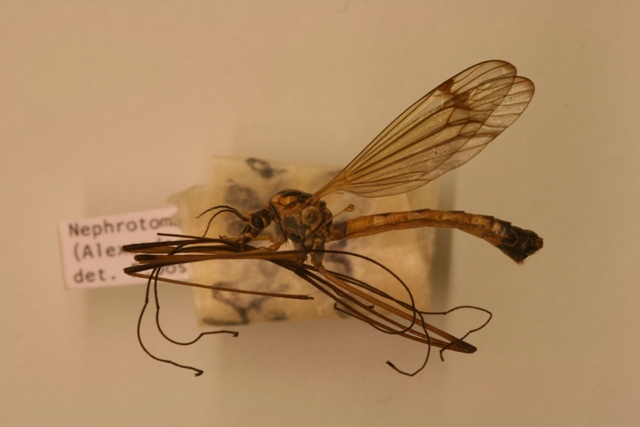 これはキリウジガガンボなどの属するTipula属に近縁のホソガガンボ類Nephrotomaの1種です。本属は北隆館の新訂図鑑に掲載されている以外に多数の種が日本からも記録されています。