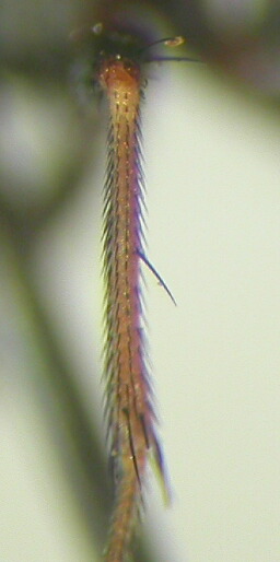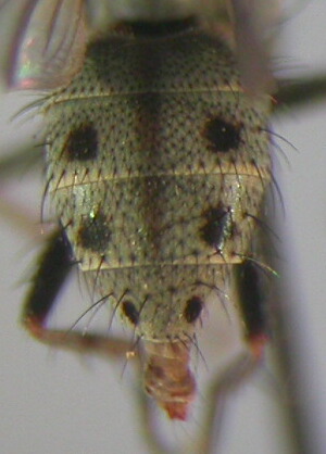 タイプシリーズも、ホロタイプが1966年に倉橋先生が登別温泉で採集された個体、パラタイプがホロタイプと同じ場所で同じ日に採集された個体と1963年に加納六郎先生が札幌の円山で採集された個体です。 ですから、まだまだ基本的な分布データがあまり出てきていない種だと思います。 あと、雄交尾器は、第5腹板により強く種の特徴が出るようなので、これもチェックする必要があるかと。 ちなみに、私の手元にはおそらくアグイホソイエバエの雌だと思われる標本が1個体あります。後で写真を紹介いたします。 |