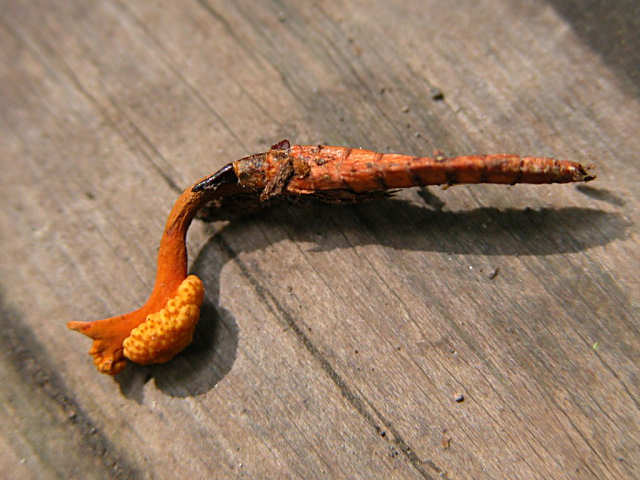 昆虫をきれいにクリ−ンアップしなければなりませんでしたね。 このときは冬虫夏草をかじり始めてまもなくでしたので、菌類のほうにポイントを置いた写真になってしまいました。 3枚目のは恐らく虫体は右向きじゃないかと思いますが、今となっては確認がとれません。この場所では比較的多く見つかるので、そのうちに再確認しておこうと思っています。