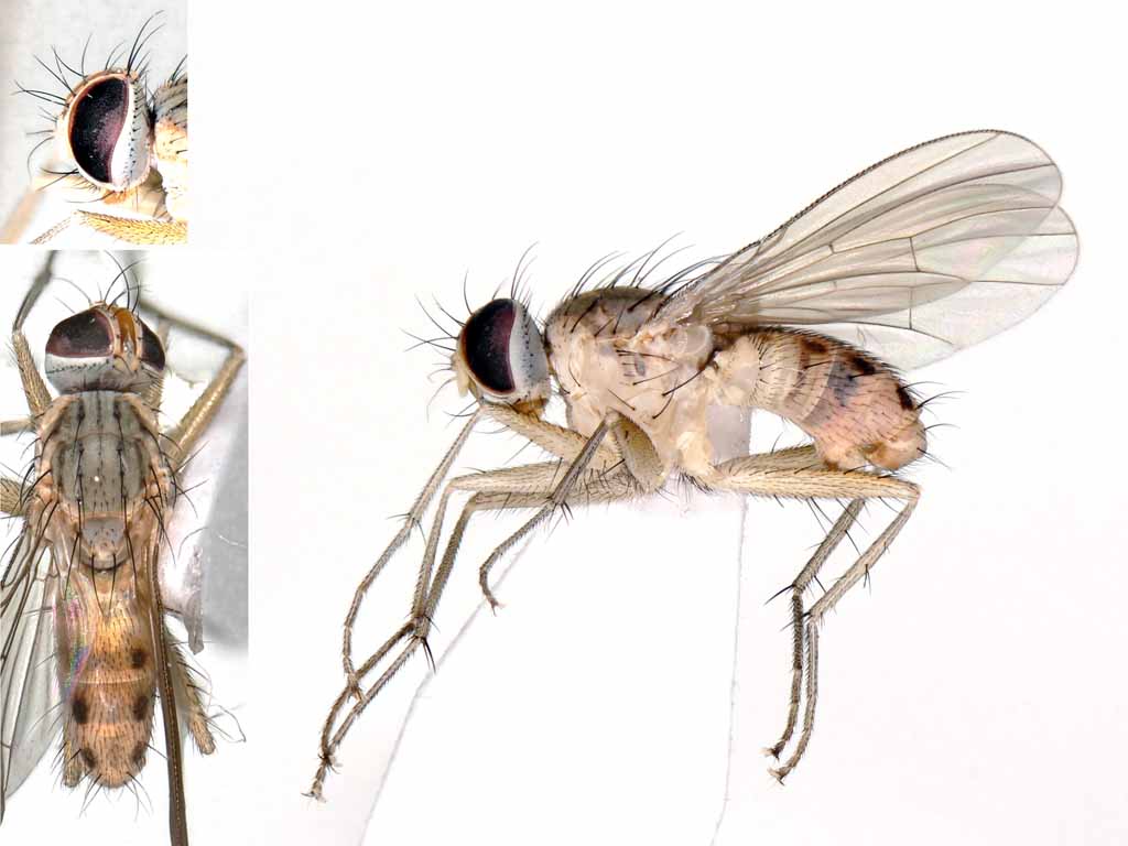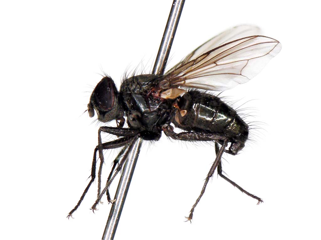 クロバエ科のMelinda pruinosaコチビクロバエとM. pusillaチビクロバエの違いが良く判りません.Fauna Japonica P.32を見ると,palpiの色が褐色なのでM. pusillaとなるようなのですが,交尾器を見るとM. pruinosaのようにも見えます.