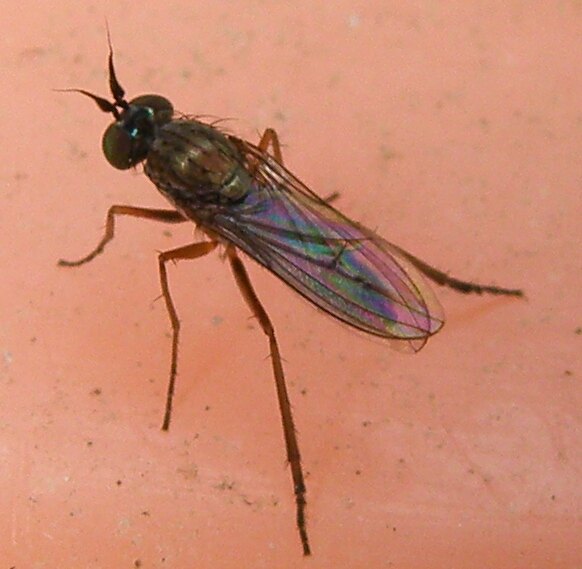 日本でも早春に多く、平地の庭に出た裸地の漏水場所などある程度恒常的な湿地にたむろして、驚かすと後脚を下に長く垂らしてゆっくりと飛翔します。時には家の中にも入ってきて、食卓の上などに静止していることさえあります。アシナガバエ科としては身近にいて、しかも大変おとなしい仲間です。 日本のアシナガバエ科は海浜岩礁性のものと、渓流性のDiostracusはかなり詳しく研究されましたが、他の属はほとんど全く研究されていない、という状況です。