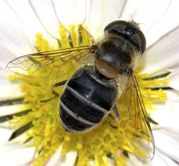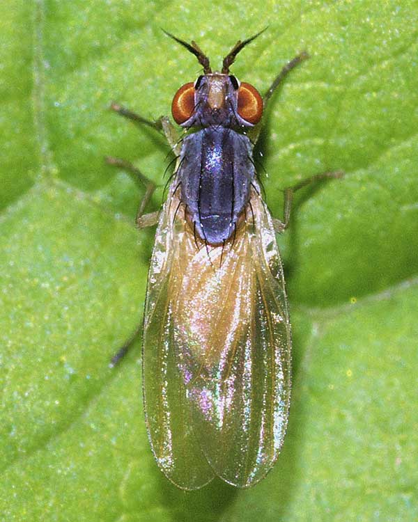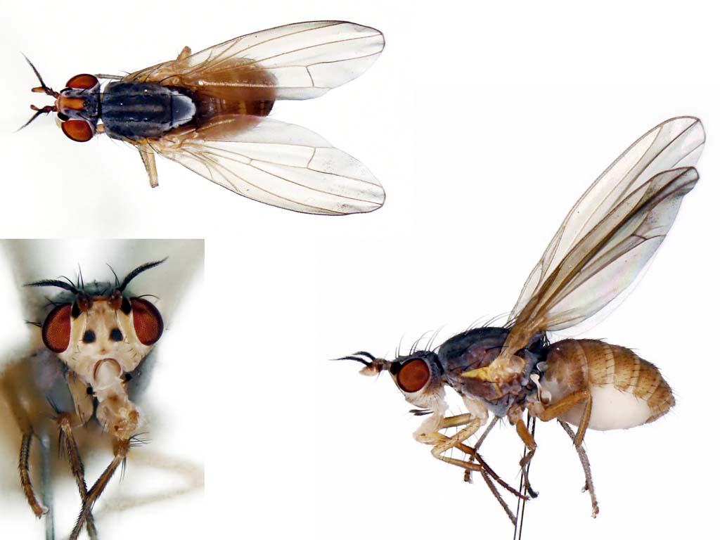 論文の御紹介有り難う御座います。 背面からの写真1枚では検索は困難なので、当該論文の1〜3までの記載をザッと見てみましたが、体色が該当する種は見つかりませんでした。しかし、あくまで「ザッと」なので、もう一度キチンと見てみます。 シマバエ科であることは確かと思いますが、Homoneuraである確証はありません(何分にも写真1枚ですから)。別属の可能性も大いにあります。 取り敢えず御礼まで。