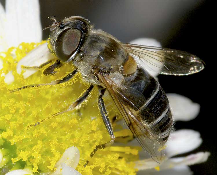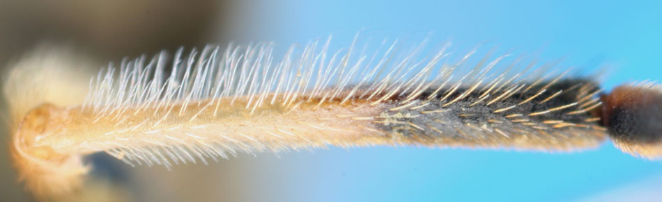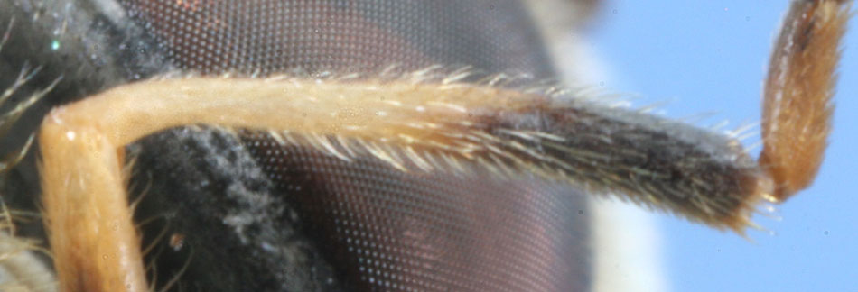 御回答有り難う御座います。 触角刺毛は太いですし、東京付近ではProtrigonometopus maculifronsの記録が彼方此方にあるのに対し、P. sexliturisは全く見つかりませんでしたから、P. maculifronsで決まりの様ですね。 脛節端に2本の剛毛が見えるので、エコリスの検索表では、一番最初で間違えてしまいました。 かなり普通種で、しかも晩秋に限られる種ではない様ですから、今後気を付けて、見付けたら顔の写真を撮って確認したいと思います。 標本写真有難う御座いました。 |