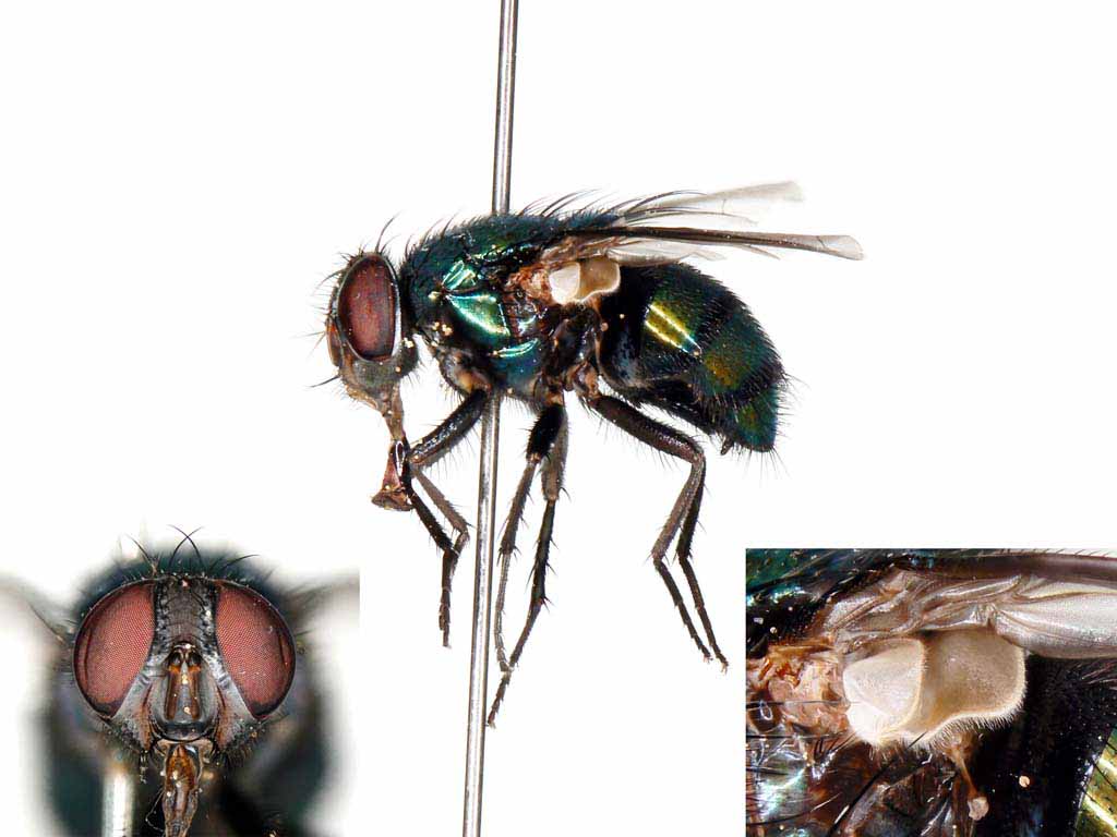 昨年の12月上旬に東京都世田谷区西部で撮ったハエです。もう薄暗い時刻で気温も下がっており、動きが鈍いと思って油断したら大間違い、背面から撮っただけで逃げられてしまいました。複数居たのでその後2〜3日買い物ついでに探してみましたが、もう2度と見つかりませんでした。・・・と言う訳で背面からの写真しかありません。しかし、頭部胸部の剛毛配列や脛節端付近に剛毛があることから、シマバエ科で間違いないものと思います。以前、No.5060からのスレッド(生憎消失した部分です)に投稿したシマバエ科のHomoneura属と思しきハエと頭部胸部の剛毛が細部に至るまで殆ど同じ(相違は、単眼剛毛が以前のハエでは前向き平行なのに対し、このハエでは前向きで八の字型に拡がることのみ)なので、Homoneuraかその近縁属の可能性が高いと思います。 他に写真はありませんが、色彩が非常に特徴的なので、何方か御存知の方、居られますでしょうか。 追記:体長は4mm、翅端まで5.5mmです。