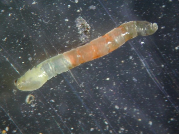 体長が10ミリを超えないのなら、セスジユスリカにほぼ間違いないでしょう。セスジユスリカの幼虫は家の周囲のやや流れのある溝や、水田脇の水路などに生息しています。このセスジユスリカに外見のそっくりなヒシモンユスリカというユスリカも沢山います。私もユスリカを見始めた頃は両種の違いが全然判りませんでした。セスジユスリカと異なる幼虫を採ってきて飼育したはずなのに、羽化してきた成虫は皆セスジユスリカなのは何故だと随分悩んだ事があります。今は、雄の生殖器、斑紋のパターンで識別は出来ますが。この両種の幼虫はうまく棲み分けています。セスジユスリカは流水中に、ヒシモンユスリカは止水中に生息します。例えば、5月頃この両種は水田などで沢山出現しますが、水田脇の側溝にはセスジユスリカが水田内にはヒシモンユスリカがすんでいます。また、ミクロネシア、小笠原にはヒシモンユスリカにそっくりなミナミヒシモンユスリカ(Chironomus samoensis Edwards)と言う種が分布しています。沖縄や八重山にいる種がヒシモンユスリカなのかミナミヒシモンユスリカなのかはまだ結論が出ていません。私は後者だと思うのですが。これについてはオーストラリアの研究者が今、染色体、DNAで解析を行っているところです。彼には、本土産のヒシモンユスリカを飼育して、全ステージのサンプルを送ってあります。結論を楽しみにしているところです。