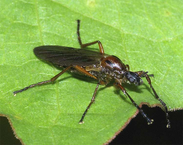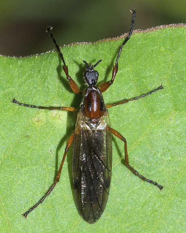専門家ならではの模式標本や個体変異についての情報有難う御座います。No.5053のArge氏に紹介して頂いた論文を早速見てみましたが、やはり「雌の胸部は全面的に赤褐色」と書かれていました[追記:これが原記載論文であることに後で気が付きました]。 「晩秋に出現する唯一のケバエ」と書きましたのは、北隆館の新訂原色昆虫大図鑑第3巻に載っているケバエ科昆虫の解説で、出現期に晩秋(11月前後)を含んでいる種がNo.1744のウスイロアシブトケバエ B. flavihalter(10〜11月に成虫出現)のみであったことに拠ります。図鑑には「晩秋」とは書かれておりませんが、少し「意訳」に過ぎたでしょうか。 有難う御座いました。今後とも宜敷御願い申し上げます。